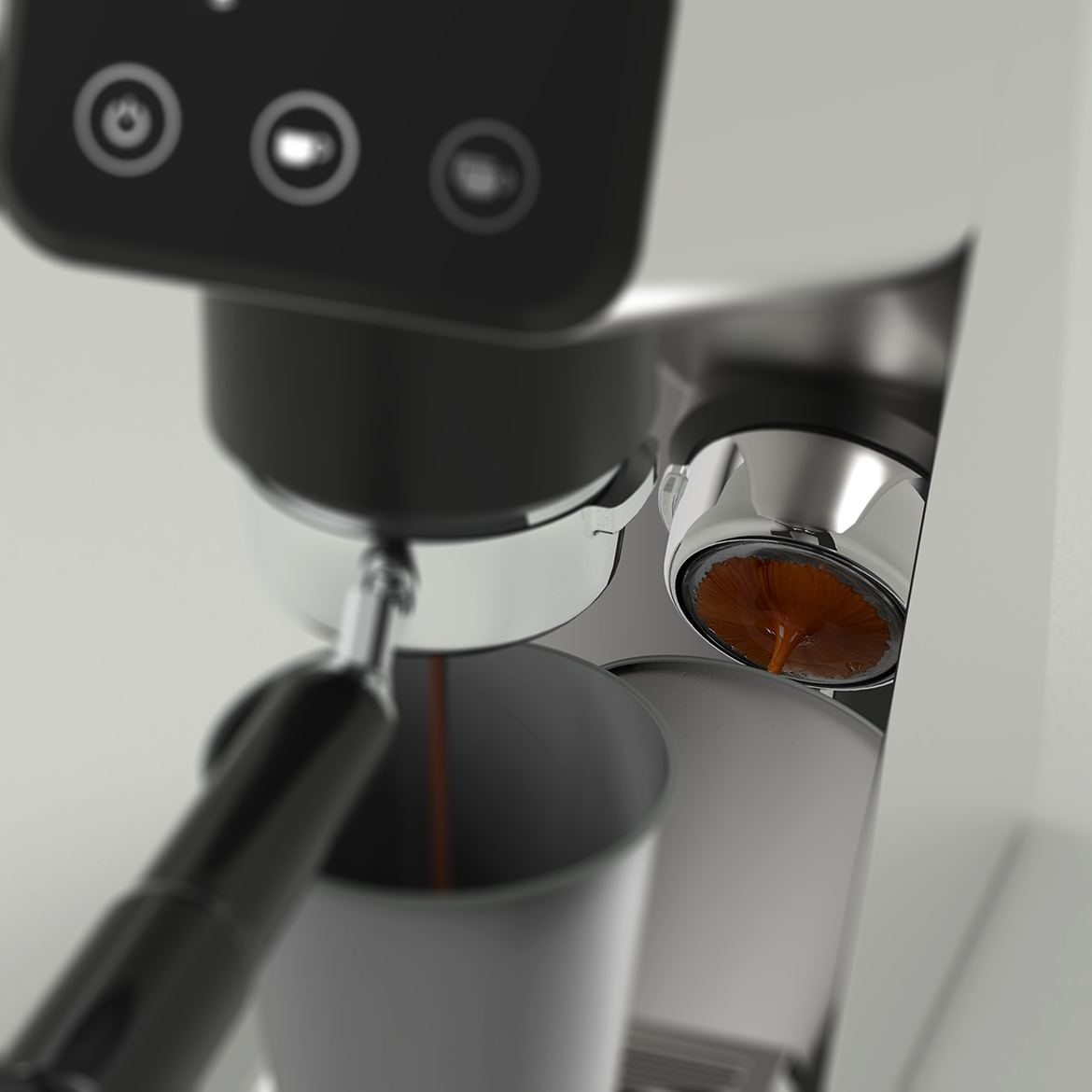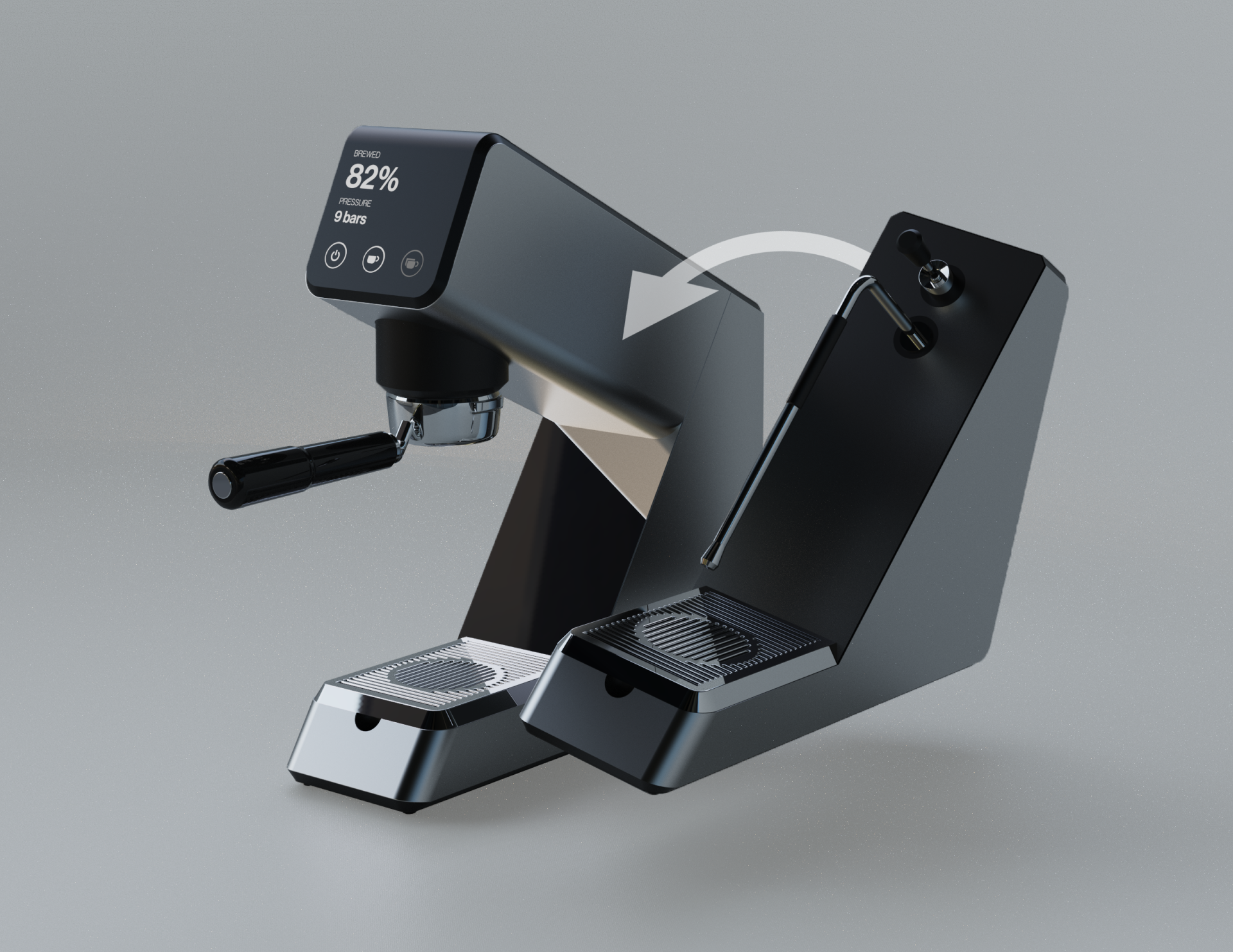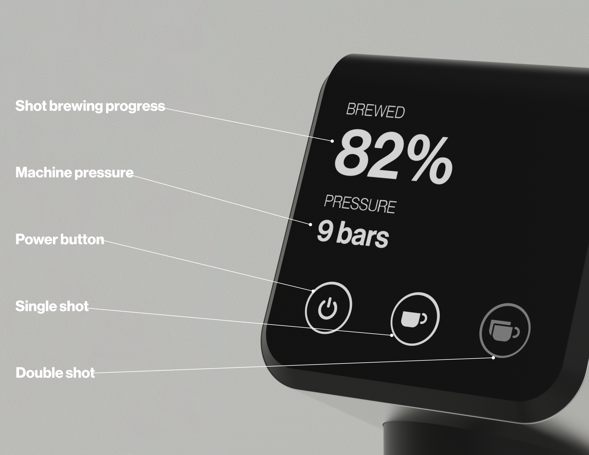 To keep the machine visible during multitasking, the open body and reflective backplate allow for the barista to quickly understand at a glance the progress of the shot being pulled.