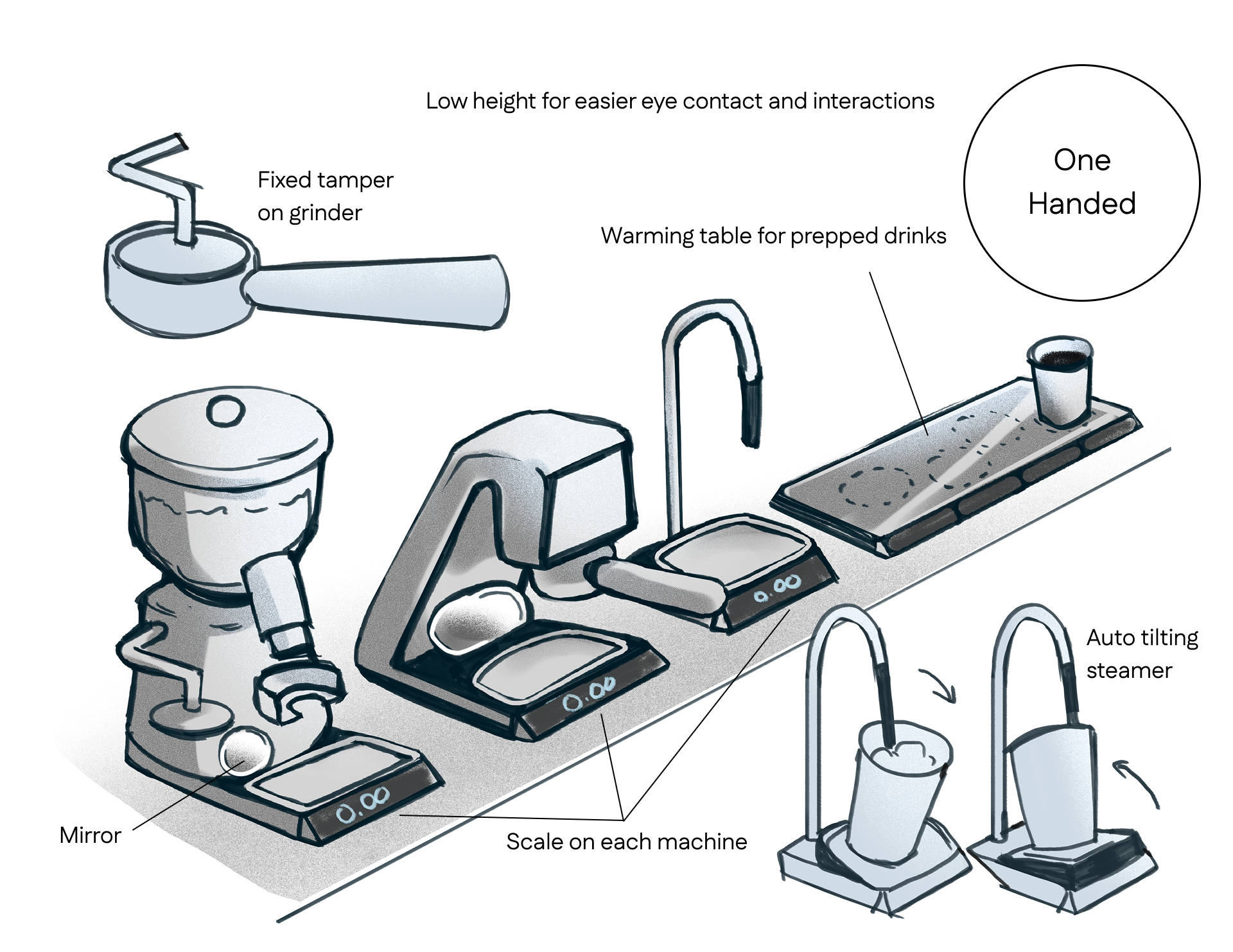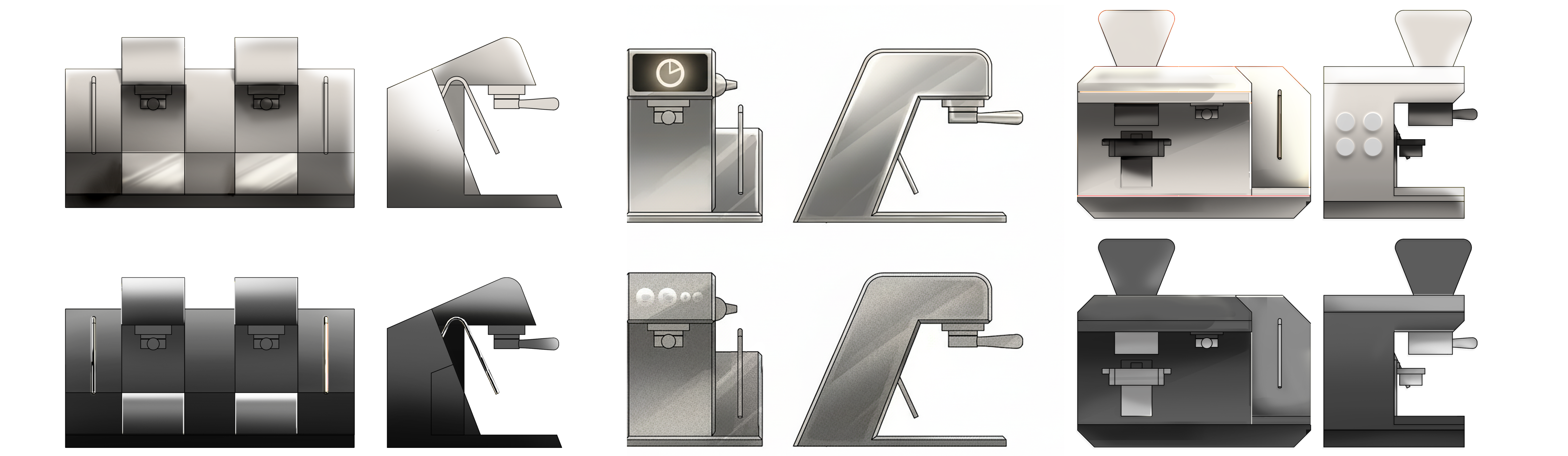 My prompt was to design a commercial espresso machine that was built specifically for a barista working behind a bodega counter. There were multiple challenges I found in this problem space.