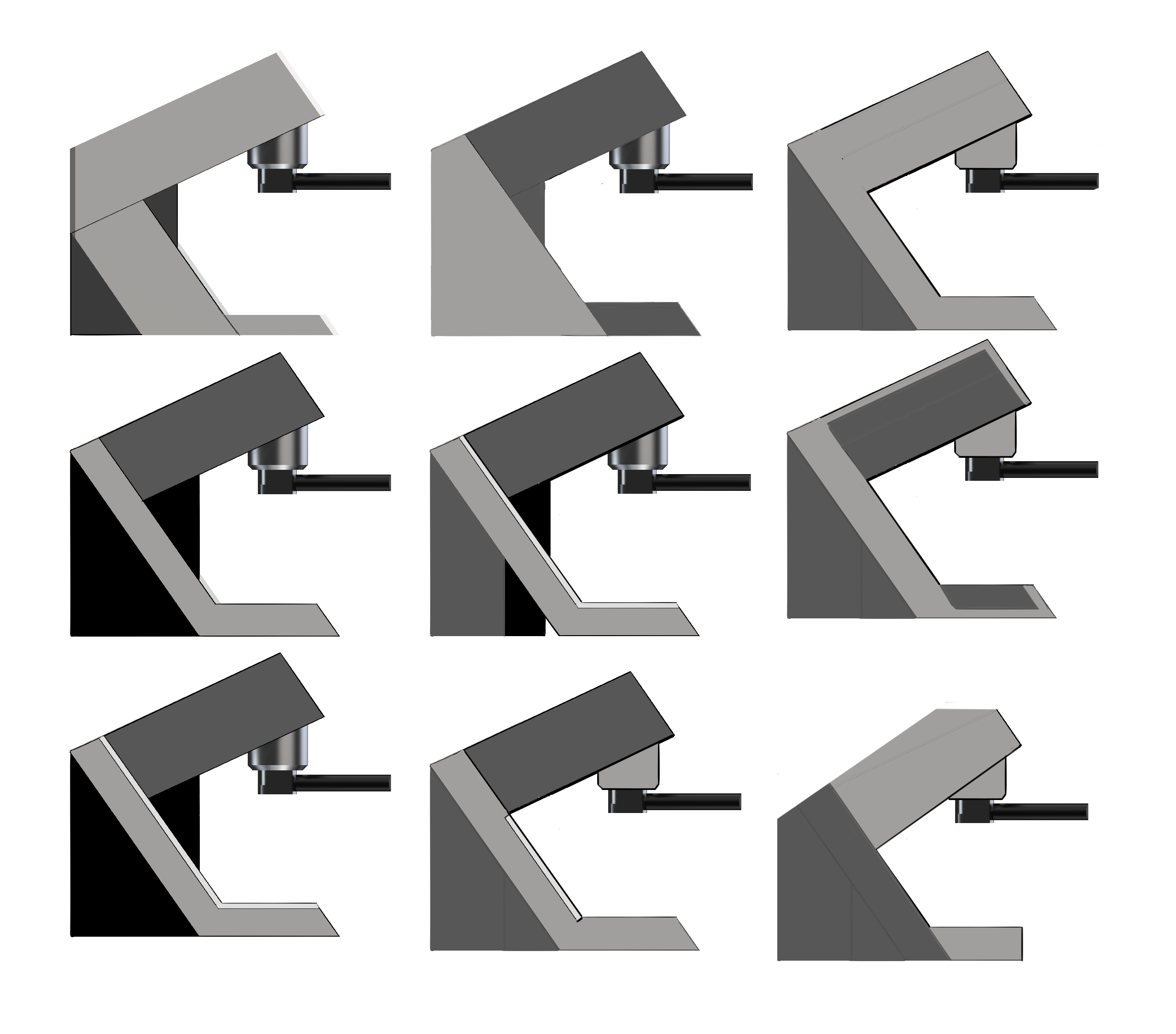 By basing the form off of the angle of the back face, I experimented with dividing up the form in different ways. Eventually, I realized I wanted to take a filleted approach to the form to keep it from appearing too hostile.